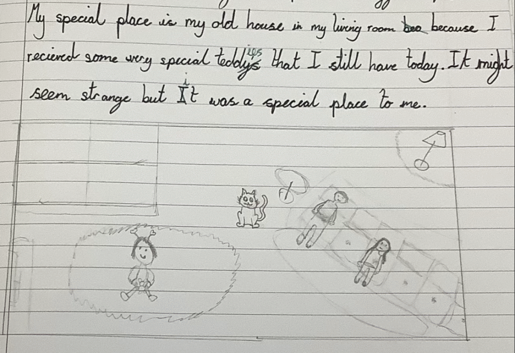 In our RE lesson, we spoke about what makes a place special and why. The children then wrote about there special places and after visualising drew a quick sketch. They then took turn sharing with the rest of the class.
